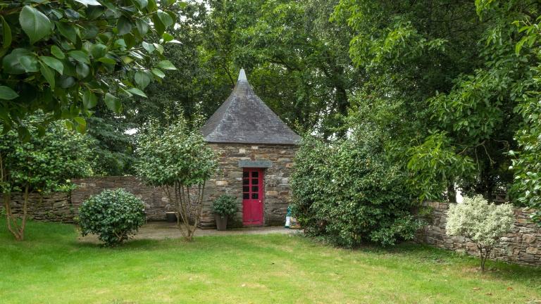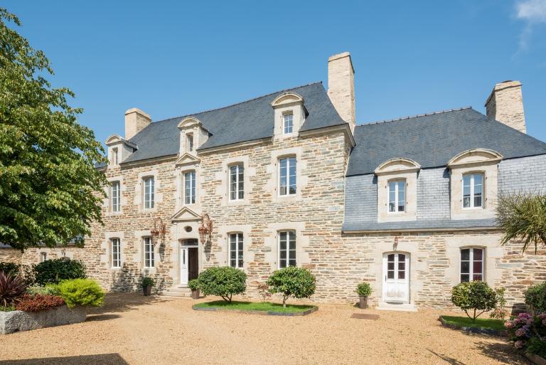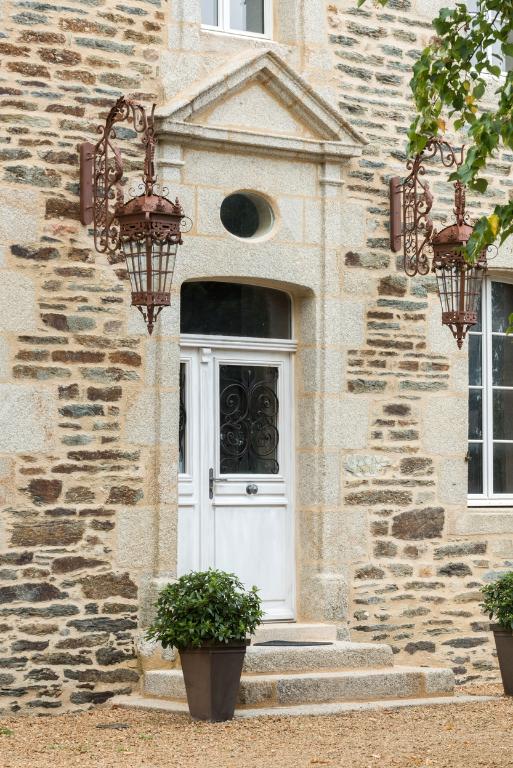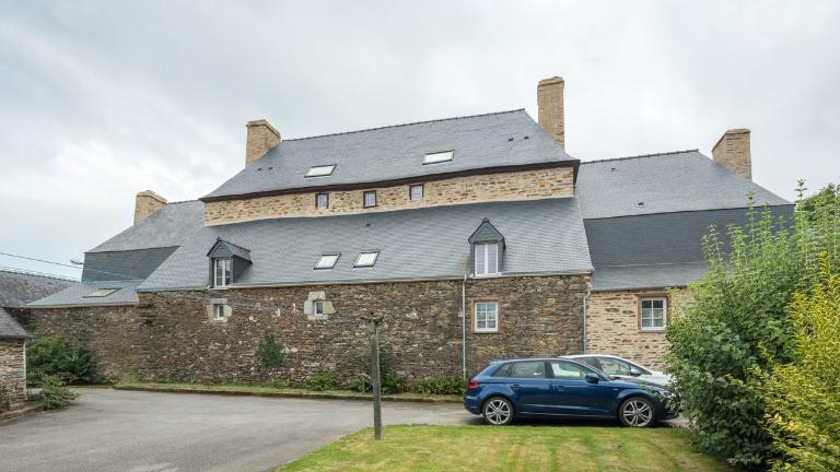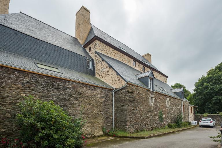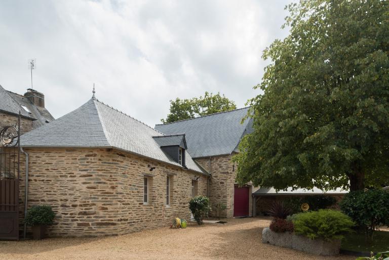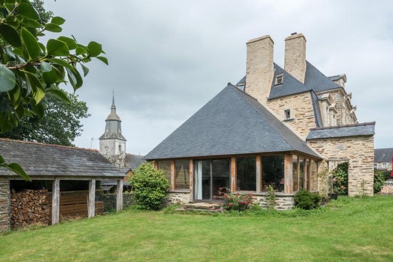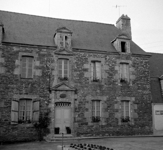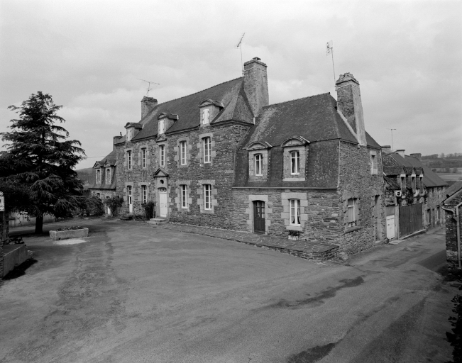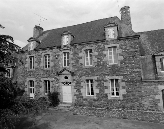 La maison est construite à l'entrée du bourg, perpendiculairement à la rue, orientée au sud. Elle est précédée d'une cour fermée par un mur de clôture, un portail d'entrée à piliers et deux dépendances. A l'ouest et au nord, jardin et vergers complètent la propriété. Le corps de logis principal à un étage est couvert d'un toit à croupes dont le comble est éclairé par des lucarnes en pierre à fronton cintré. Il est cantonné de deux pavillons, couverts d'un toit brisé dont l'étage de comble est également éclairé par des lucarnes en pierre. L'ensemble est construit en moellons de schiste soigneusement équarris, avec encadrements de baies en pierre de taille de granite. La rigoureuse symétrie de la façade est accentuée par la travée centrale, où porte d'entrée, fenêtre et lucarne sont encadrées de pilastres et surmontées d'un fronton. Le dessus-de-porte de l'entrée possède un oculus qui contribue à éclairer le vestibule. Les hautes souches de cheminées renforcent la verticalité du bâtiment. Un grand appentis à étage est accolé à la façade arrière du logis.