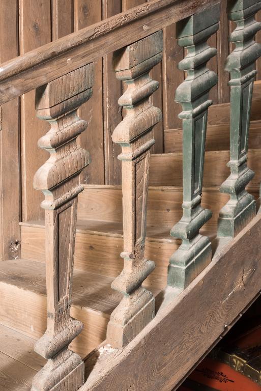 - escalier dans-oeuvre : escalier tournant à retours avec jour en charpente