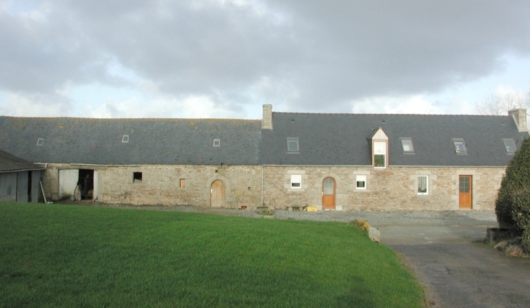 Ferme composée d'un logis restauré, de plan rectangulaire allongé, réunissant sous un même toit deux unités d'habitation, et d'une partie agricole mitoyenne ancienne, de plan rectangulaire allongé réunissant sous un même toit une grange ouverte d'une porte charretière et une partie ouverte d'une porte plein cintre chanfreinée (attestée comme écurie au cours du 20ème siècle par la tradition orale). La façade postérieure de ce bâtiment à vocation agricole est aveugle. L'ensemble, construit en granite et schiste, est orienté au sud. Un puits semi-circulaire appareillé en maçonnerie, couvert d'un dôme en pierre coupé en pignon du côté de l'ouverture, se trouve à l'entrée de la cour.