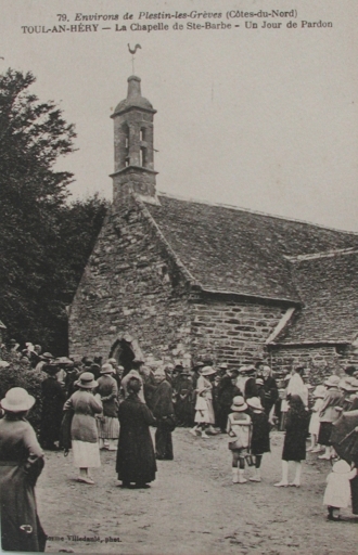 Chapelle datant du 16ème siècle, restaurée en 1732 (d'après inscription). Le clocheton date de l'année 1609 (porte la date). Sainte-Barbe fut la chapelle des garde-côtes dont les batteries défendirent le port de Toul an Héry contre l'envahisseur anglais, de la fin du 16ème siècle jusqu'à l'époque napoléonienne. Elle servit même de caserne quand, en l'an IV, elle reçut les artilleurs du 2ème bataillon des Hautes-Alpes. Cependant, la chapelle existait bien avant la création des milices littorales. Après la Révolution, la chapelle Sainte-Barbe fut entretenue régulièrement par Jacob, ancien patron des douanes de Toul an Héry, dont les deux fils, Yves et Joseph, continuèrent comme responsables de la fabrique, à conserver l'édifice pieusement. Elle appartenait, selon René Couffon, à l"hôpital de Morlaix à la Révolution et fut vendue comme bien national, puis donnée à la fabrique le 7 décembre 1823. L'édifice est inscrit sur l'inventaire supplémentaire des Monuments Historiques depuis le 9 octobre 1934.