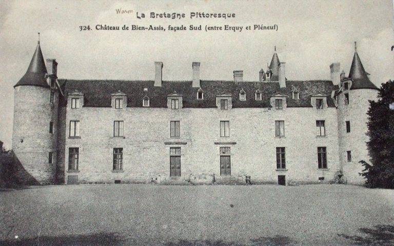 Le château de Bienassis est une construction multiphasée dont les origines remontent au milieu du Moyen Age. Ce château du 15ème siècle, transformé et agrandi au goût de la Renaissance au cours du 17ème siècle, a succédé à un manoir du 12ème ou du 13ème siècle à salle à plan basilical et à ossature de bois cerné d´une douve primitive prolongée au cours de la 1ère moitié du 15ème siècle. Propriété d´une famille dénommée de La Motte au milieu du Moyen Age, probablement seigneurs de La Motte d´Erquy, la terre de Bienassis fut acquise au début du 15ème siècle par Jean de Quelennec, seigneur de Quelennec en Quintin, uni à Tiphaine du Fou en 1374. L'actuel corps de logis a été reconstruit pour Geofroy de Quelennec, fils cadet de Jean de Quelenec, entre 1414, date à laquelle le manoir primitif est déclaré en ruine, et 1434, date à laquelle l´existence d´un manoir neuf est attestée. Une enquête datée de l'année 1434 stipule en effet que le manoir primitif « estoit mal logé et y avoit une ancienne salle gasté et vidé, laquelle ledit Geoffroy [de Quellenec] a fait tresbien réparer et édiffier et auxi y a fait une meson neufve ».