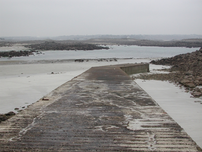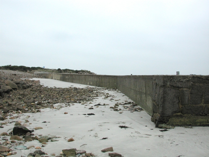 Le quai actuel mesure environ 50 mètres de longueur en deux épis qui font un grand angle ouvert vers le sud-ouest, sur deux longueurs : 30 mètres et 20 mètres. La cale est large de 4 mètres, submersible avec une hauteur variable de 1, 60 mètres, en bout de cal, à 2 mètres. Le quai se termine par un escalier. La construction d'origine est en moellons avec un parement en pierres de taille, rejointoyées en ciment. La cale est vaigrée en ciment pour sa plateforme. Le parement du mur de quai ouest est cimenté, mais le mur de quai est, qui a conservé les pierres apparentes.