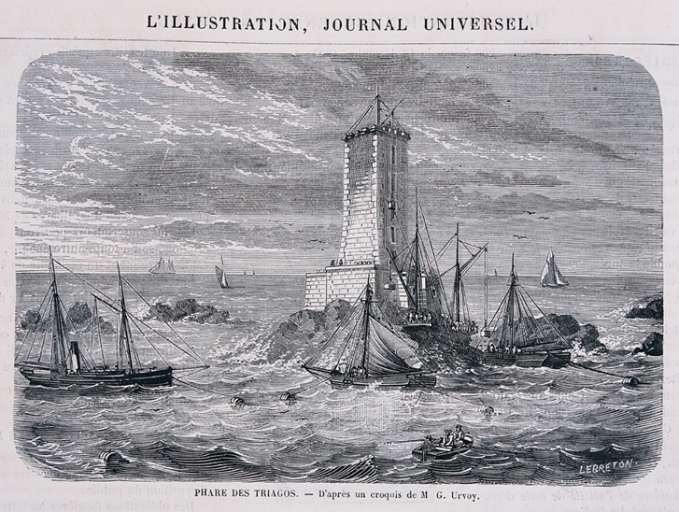 En totalité (à l'exception du feu actuel et de son socle en ciment) y compris le bâtiment annexe situé à l'arrière du phare et l'ensemble de son soubassement avec cuisine, réserves et escaliers. Situé en Manche sur le plateau des Triagoz, nord-ouest de Trégastel-Plage.