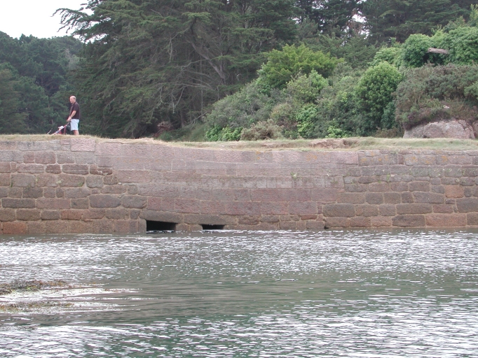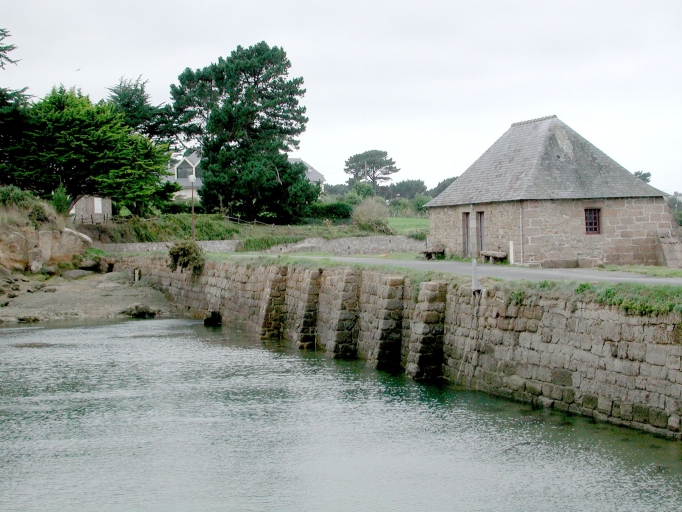 La chaussée originelle du moulin du Petit Traouïero date certainement de la construction du moulin au 4ème quart du 15ème siècle. Il appartenait aux seigneurs de Crugil, qui firent effectuer régulièrement des travaux sur la chaussée en 1517 : bresches, cadances et romptures, intervenus tant en la chaussée que ès aultres endroictzet des réparations qu'il convient d'entreprendre pour les mettre en état de moudre (16 mai 1517, AD 22, 1E 3049). De nouvelles réparations furent effectuées en 1764. On peut supposer que d'autres travaux furent exécutés les décennies suivantes jusqu'au 20ème siècle, à cause des dégâts liés à la pression exercée contre la digue par le ressac à grande marée. En 1982 du béton fut injecté dans la chaussée, lors des marées noires. Au début du 19ème siècle, la chaussée du moulin était la seule route pour aller de Ploumanac'h à Trégastel. Le moulin du Petit Traouïero, avec l'étang situé à Lan-Toulaber, ainsi que le lac et la chaussée du moulin (parcelles D 915, 921, 1285) sont reconnus comme site classé le 14 mars 1943.