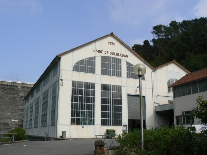 Le barrage de Guerlédan est du type poids en béton. Il a une longueur en crête de 206m et une hauteur de 44m au dessus du talweg. Il est équipé de deux conduits de vidange de fond dont le débit maximum évacuable pour chacun d'eux est de 21m3 par seconde, d'un déversoir de crue en rive droite de 22m de long à 2 passes équipées chacune d'une vanne secteur munie d'un clapet, de quatre prises d'eau capables d'absorber un débit maximum de 49m3. La retenue du barrage a une superficie de 304 ha. Quatre conduites forcées (3 de 1,70m de diamètre et une de 2m) relient les quatres prises d'eau aux groupes turbo-alternateurs situés dans la centrale (étudiés). Cette dernière est constituée de deux halles en rez-de-chaussée à pan de fer couvertes en tuile mécanique. Celle qui renferme les quatre groupes turbo-alternateur porte sur son pignon la date de 1930. Elle est éclairée par de grandes baies vitrées et le sol est recouvert par un carrelage à motif géométrique. Perpendiculairement à cet ensemble, un bâtiment à un étage carré, fortement remanié, qui avait à l'origine les mêmes caractéristiques que la centrale et devait contenir des transformateurs, abrite les bureaux de l'entreprise. La centrale restitue les eaux turbinées dans un premier bassin formé derrière le "petit barrage de Guerlédan" situé à 650m en aval du barrage. Il avait pour fonction initiale le contrôle des crues et le maintien de la navigation du canal de Nantes à Brest. Le "petit barrage" prolonge l'écluse de Guerlédan. Il est constitué, de la rive gauche à la rive droite, d'un déversoir de 9m de long, de deux vannes Stoney et d'un second déversoir de 18m de long. La retenue est de 80 000 m3. A environ un kilomètre du site, se trouve le transformateur haute tension de l'usine. Il a un toit à longs pans et est rythmé par des travées de fenêtres (6 en façade, 4 en pignon), avec une ouverture large et haute sur sa façade postérieure, surmontée de l'inscription S.I.T.E.L. Il est flanqué à l'ouest par un bâtiment légèrement plus bas et à toit en terrasse, aux fenêtres obstruées. Sur sa façade postérieure s'appuie un édifice aux mêmes caractéristiques avec deux travées de fenêtre. Au nord se trouve un grand bâtiment en béton. Il s'agit vraisemblablement du transformateur construit sous la direction des allemands pendant la Seconde Guerre mondiale pour sécuriser la fourniture d'électricité à l'arsenal de Lorient. A proximité du site, ont été construits plusieurs logements destinés au personnel. La maison du directeur comporte un rez-de-chaussée surélevé et un étage carré. Elle possède un toit à longs pans en ardoise et la partie inférieure et les chaînages d'angle des murs sont en grès. Un peu plus loin, un bâtiment en rez-de-chaussée, dont le pignon porte l'inscription EDF, servait de garage aux véhicules de l'usines. Puis on rencontre deux maisons jumelles avec un comble à surcroît. Enfin, sur la route qui mène à la centrale ont été construits 4 groupes de 2 maisons jumelles couvertes par un toit à longs pans en ardoise. Elles ont un étage carré et un comble à surcroît. Le mur du rez-de-chaussée est en grès, les ouvertures ont des linteaux en béton. Celles de l'étage sont en plein cintre avec un encadrement en granite. En amont, le barrage de Saint-Aignan construit en 1935 détermine une retenue de 240 000 m3 sur une superficie de 10ha. Il a une longueur de 180m. Il est constitué, de la rive à la rive droite, d'une digue en terre de 30m de long, d'un barrage mobile de 16m équipé de deux vannes Stoney, un déversoire de 16m de long, et d'une deuxième digue en terre de 107m. Le groupe alternateur qui y a été installé en 1989, de type siphon, est équipé d'une turbine hélice Kaplan de 480 kW de puissance. A l'aval du barrage de saint-Aignan la restitution des débits se fait directement dans le lit du Blavet dit "Blavet naturel".