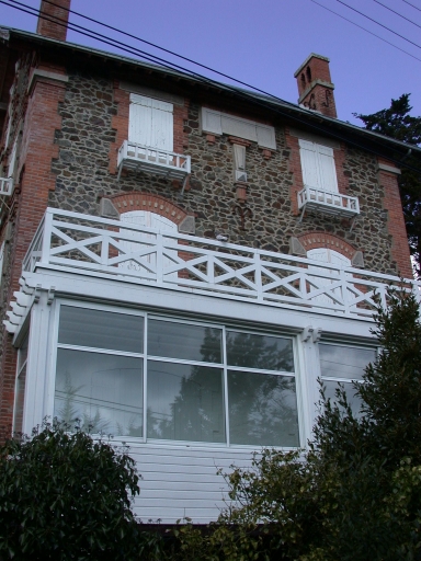Maison au volume important construite en moellons de granite et schiste. Elle est composée d'un étage de soubassement, d'un rez-de-chaussée surélevé, de deux étages carrés et d'un étage de comble. L'élévation latérale gauche, qui reçoit l'entrée abritée sous un auvent, est accostée d'une tour carrée coiffée d'un toit en pavillon sommé d'un épi de faîtage en zinc. Cette tour placée à proximité immédiate de l'entrée pourrait abriter l'escalier de distribution intérieur. Orientée vers la mer, l'élévation antérieure présente une véranda au rez-de-chaussée. L'encadrement des baies, les souches des cheminées et les chaînes d'angles sont édifiés en brique.