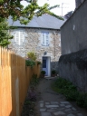 Maison mitoyenne, probablement de type ternaire, construite en moellons de granite et schiste laissés apparents.
