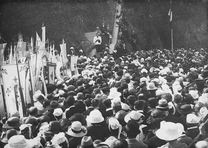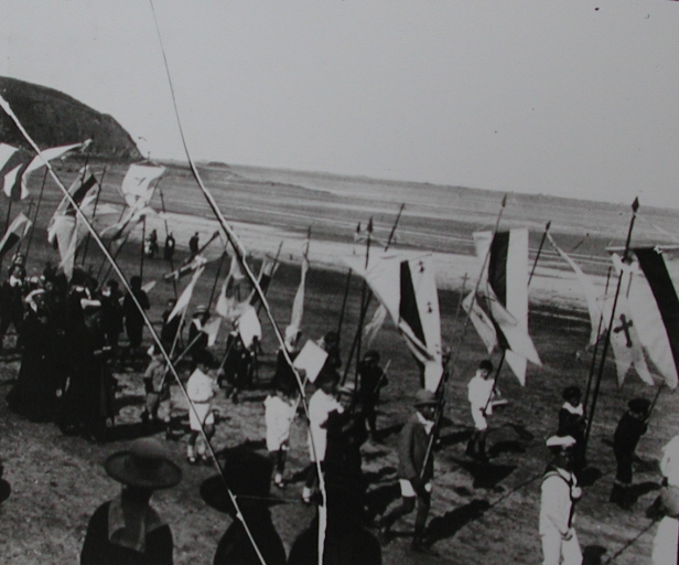 La grotte de Notre-Dame-de-Lourdes est comme les autres grottes d'Etables Grotte une grotte naturelle taillée dans la falaise, sur le haut et au nord de la plage des Godelins et du quai des Godelins.