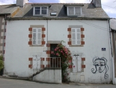 Maison mitoyenne de type ternaire dont l'encadrement des baies et les chaînes présentent une alternance régulière de brique et de granite. Les baies du rez-de-chaussée sont abritée par un auvent.