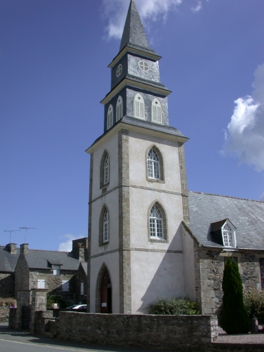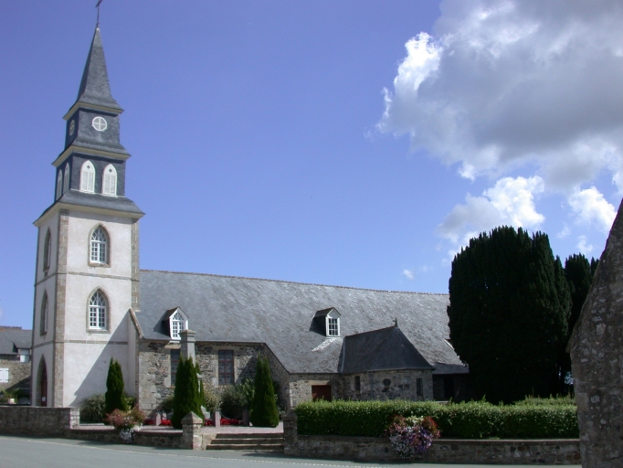 L'église paroissiale Saint-Paul est un édifice de plan allongé construit en moellons de granite et schiste. Elle est composée, d'ouest en est, d'une tour-porche hors-oeuvre, d'une nef flanquée de deux bas-côtés à mi-distance de sa longueur, d'un choeur et d'une sacristie comprenant un rez-de-chaussée, un étage carré et un comble à surcroît. Les bas-côtés sont séparés de la nef par trois arcades. Le bas-côté sud comprend une chapelle à trois pans couverte d'une croupe polygonale. L'espace intérieur est dallé au sol et couvert d'une charpente lambrissée.