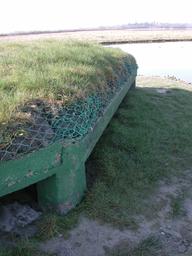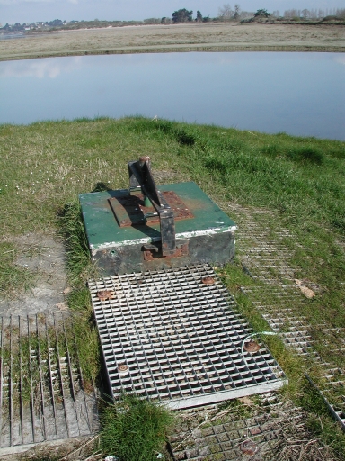 Les deux gabions repérés sont situés sur une terrain pourvu d'une végétation rase, à proximité d'un plan d'eau naturel, mais dont les berges ont été protégées par un grillage et des piquets en bois (afin d'éviter l'érosion et l'envasement). Le gabion est situé face au large, au bord de la baie de Beaussais dans la partie recouvrante de la baie aux moyennes marées. Le gabion est submersible et est donc étanche grâce à un système de fermeture façon 'cocotte minute' avec un joint étanche. Il dispose de 3 ouvertures de 3 mètres de longueur et de 30 cm de hauteur pour l'observation et le tir. La partie supérieure, haute d'environ 1 m du gabion, est surmontée d'un autre dispositif de fermeture avec une grille en acier. Le gabion a un plan carré (4 m x 4 m). Il dispose à l'intérieur d'aménagements sommaires pour le couchage du chasseur. Construit en terre et en ciment, le gabion a une couverture végétale qui sert de 'camouflage'.