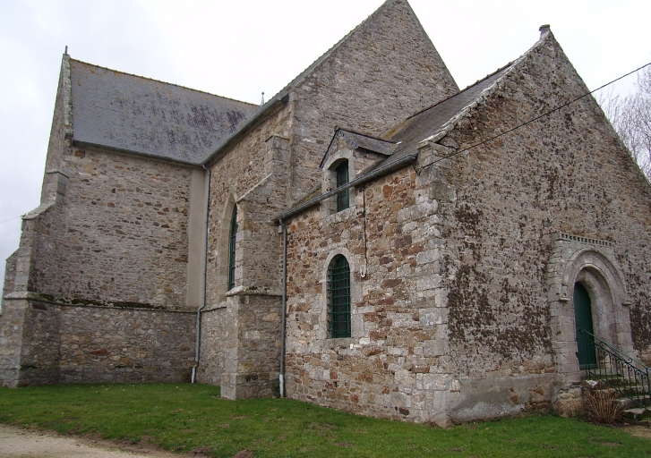 Mentionnée dès 1163 sous le patronage de Saint-Petrock, l'église paroissiale de Trégon a été prieuré-cure de l'abbaye de Saint-Jacut-de-la-Mer jusqu'à la Révolution. Selon René Couffon, l'église actuelle, dont la sacristie conserve un portail datant probablement du 12ème siècle avec ajout d'une frise de quadrilobe au 15ème siècle (analyse stylistique), a été construite au cours du 2ème quart du 19ème siècle d'après les plans de l'architecte Bézier La Fosse. La première pierre de l'édifice a été bénie le 10 août 1843 par Mgr de Lesquen, évêque de Rennes. La bénédiction de l'église a eu lieu le 11 mai 1848 en la présence de l'évêque de Saint-Brieuc, Mgr Le Mée. La tour a été reconstruite au cours du 4ème quart du 19ème par J.-L. Chevalier, entrepreneur de travaux publics à Dinan, d'après les plans et devis de l'architecte briochin J.-A. Le Coz datés du 15 novembre 1884 (projet inachevé comme en témoigne l'absence d'une flèche en maçonnerie). La maîtresse-vitre de la tour a été réalisée par le peintre-verrier Laigneau.