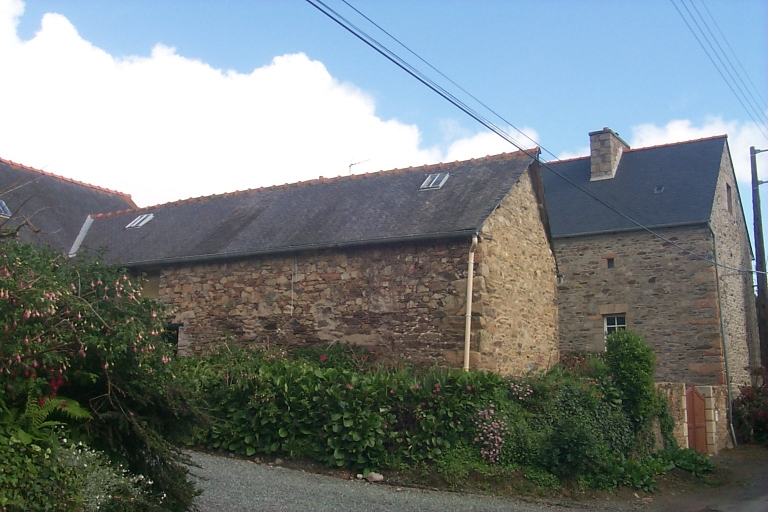 Ferme construite en moellons de granite. Elle comprend un corps de logis de plan rectangulaire allongé enfermant au centre, entre deux murs de refend portant souche de cheminée, un bâtiment à deux pièces au rez-de-chaussée et à un étage carré prolongé de chaque côté par un bâtiment à pièce unique au rez-de-chaussée et à comble à surcroît. La porte d'entrée, située au centre de la façade antérieure et dont le linteau présente le millésime 1865, est surmontée d'une niche à statuette. La façade antérieure du logis a fait l'objet de remaniement (baies). La façade postérieure présente à gauche une porte en plein-cintre murée et plusieurs trous de boulin.