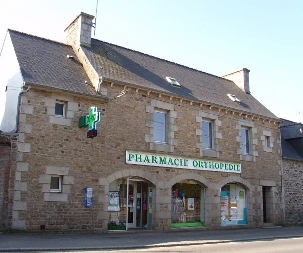 Maison haute mitoyenne de plan rectangulaire construite en moellons de granite et schiste. L'encadrement des baies et les chaînes d'angles sont édifiés en pierre de taille de granite. Le rez-de-chaussée à usage commercial est ouvert de trois larges baies à arc segmentaire jumelées et d'une porte desservant l'étage à droite.