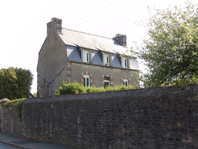 Maison de plan rectangulaire, à double orientation, à accès antériueur central et à deux pièces au rez-de-chaussée, couverte d'un toit à longs pans brisés. Le gros-oeuvre est couvert d'enduit. L'encadrement des baies et les chaînes d'angles alternent régulièrement brique rouge et pierre de taille de granite à ton clair. Le mur de clôture chaperonné est construit en moellons de granite et schiste.