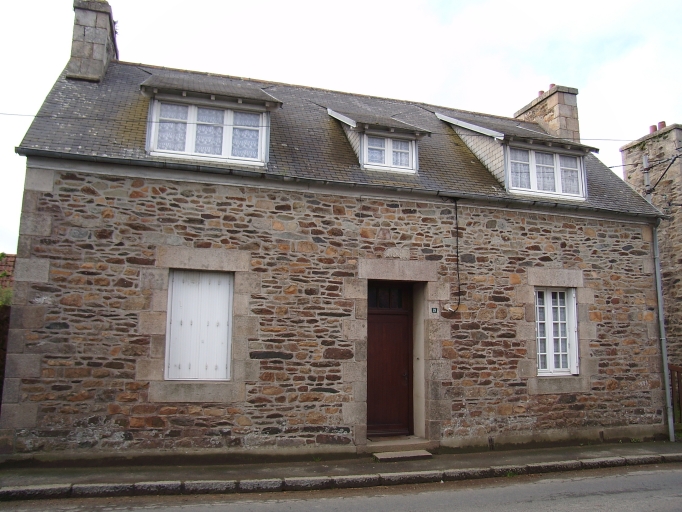 Maison de plan rectangulaire, à deux pièces au rez-de-chaussée et à accès antérieur central, construite en moellons de granite et schiste.