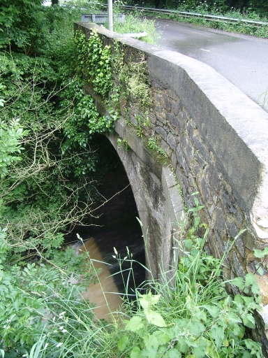 Pont à arche unique en plein-cintre construit en moellons de granite et schiste.