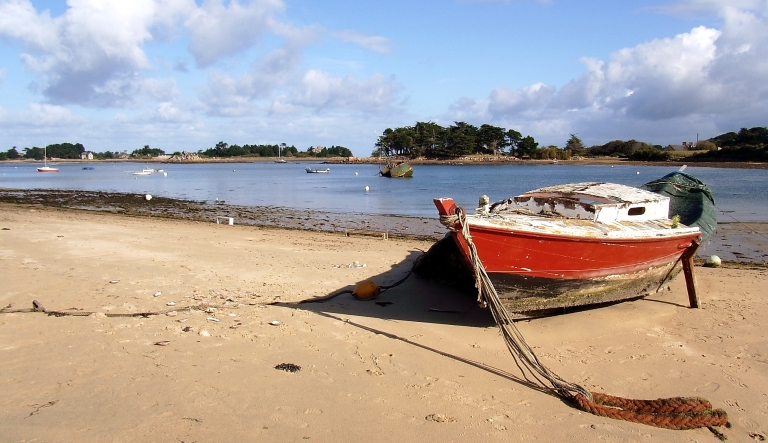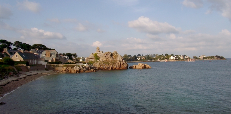 Les îles ont représenté les premières occupations du littoral par les populations venues d'outre Manche, en particulier les moines évangélisateurs dés le 6ème siècle. Elles ont conservé de nombreux témoignages matériels de cette colonisation pacifique, qui s'est renouvelée par la présence souvent discontinue des ordres monastiques entre l'île Saint-Gildas et le Port-Blanc (chapelles, ex-voto marins). Les fontaines, les puits et les lavoirs traduisent aussi le culte de l'eau. Les moulins à marée (Buguélès et Pellinec) rappellent l'importance des marées meunières. La datation des oeuvres repérées et étudiées pour le patrimoine maritime de cette commune est comprise entre la période antique (pêcheries), le 15ème siècle (chapelle Saint-Gildas), le 17ème siècle (moulin du Guermeur), le 18ème siècle (ensemble fortifié du Port-Blanc), le 19ème siècle (3 ex-voto marins, le moulin à marée de Buguélès, les fontaines, puits et lavoirs) et le 2ème quart du 20ème siècle (5 bateaux de plaisance).
