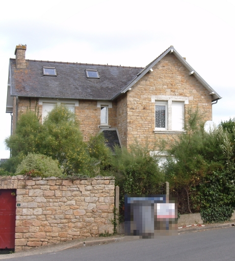 Maison haute, à accès antérieur central, construite en moellons de granite. La façade antérieure sur rue est animée par une avancée latérale à pignon.