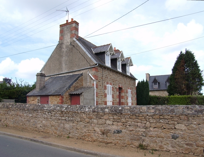 Maison de plan rectangulaire, à deux pièces au rez-de-chaussée et à accès antérieur central, construite en granite et brique. L'encadrement des baies couvertes en plate-bande avec clé de granite et les chaînes d'angles alternent régulièrement brique rouge et granite en pierre de taille. Le gros-oeuvre de la façade antérieure est édifié en moellons de granite équarris. Trois lucarnes-pignon en charpente en bois sont situées sur le versant antérieur du toit.
