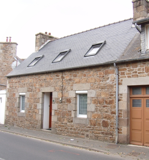 Maison de plan rectangulaire, à deux pièces au rez-de-chaussée et à accès antérieur central, construite en moellons de granite.