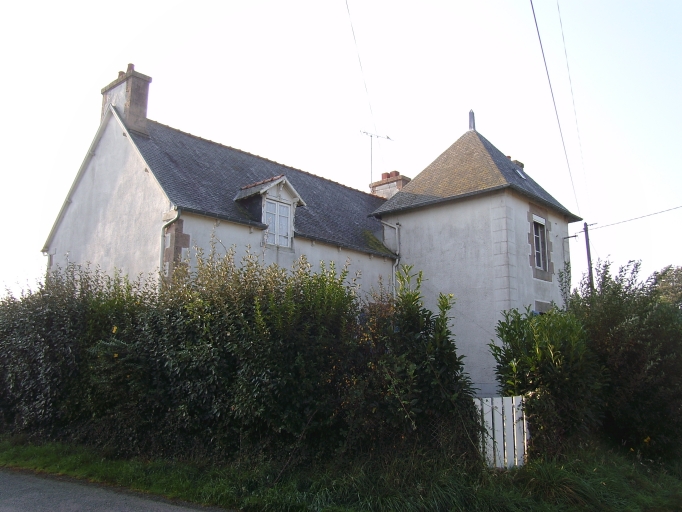 Maison de plan rectangulaire, à deux pièces au rez-de-chaussée et à accès antérieur central, construite en moellons de granite couverts d'enduit. L'encadrement des baies et les chaînes d'angles édifiés en pierre de taille sont en granite rose. Éléments de décor : granite rose, marquise, lucarnes-pignon en charpente en bois. La façade postérieure reçoit à droite un bâtiment de plan massé couvert d'un toit en pavillon.