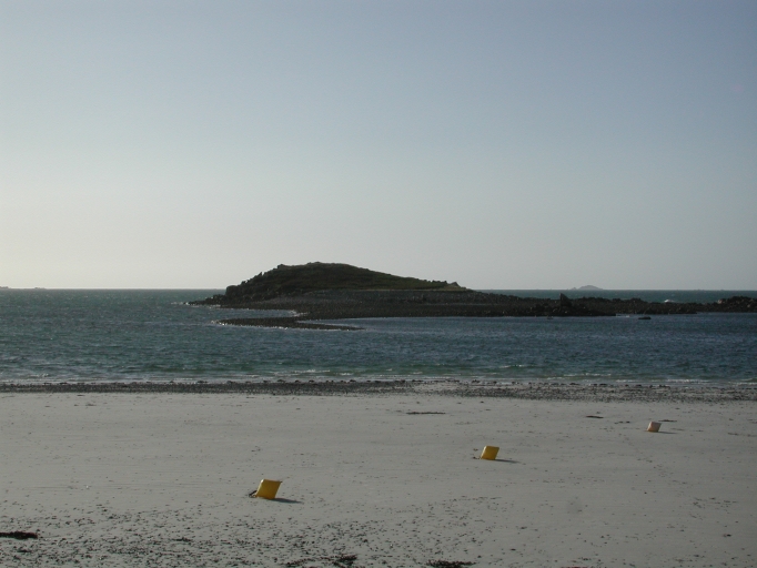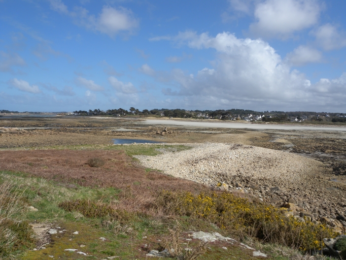 L'Île Bruc mesure seulement quelques centaines de mètres carrés. Cette île rocheuse forme un 'crec'h', avec une petite lande de fougères. On peut remarquer une cuvette au Sud-Est derrière un cordon de galets, une roche détachée au Sud de l'îlot 'Run Nevez' ('Roche Nouvelle') et le sillon reliant l'ïle Bruc à la terre 'Graou Brug. L'échouage au Sud de 'Graou Brug' s'appelle 'Ar Glazoueier', 'Les herbiers'. Il existe une passe de pleine mer entre 'bonnez' ('Bornes'), soit deux têtes de roches plates à l'Est de 'Karreg an Normand' (roche très poîntue) et 'Penn-Glaozouier'. La pêcherie se trouve au Nord-Ouest de l'île Bruc. Elle est nommée 'Ar Gibellou' ('Les Cuvettes') sur la carte marine. Cette longue barrière rocheuse formant un petit 'loc'h' au Sud-Ouest de Roc'h Meno, soit au Nord-Ouest de l'Île Bruc. Sur des vues aériennes IGN (1988 et 2000), Loïc Langouët a noté l´existence d´un barrage linéaire. Cette pêcherie barre un couloir entre des roches. Elle a une longueur de 48 m. Le niveau du sol est de : +2,25 m/0 SHOM.