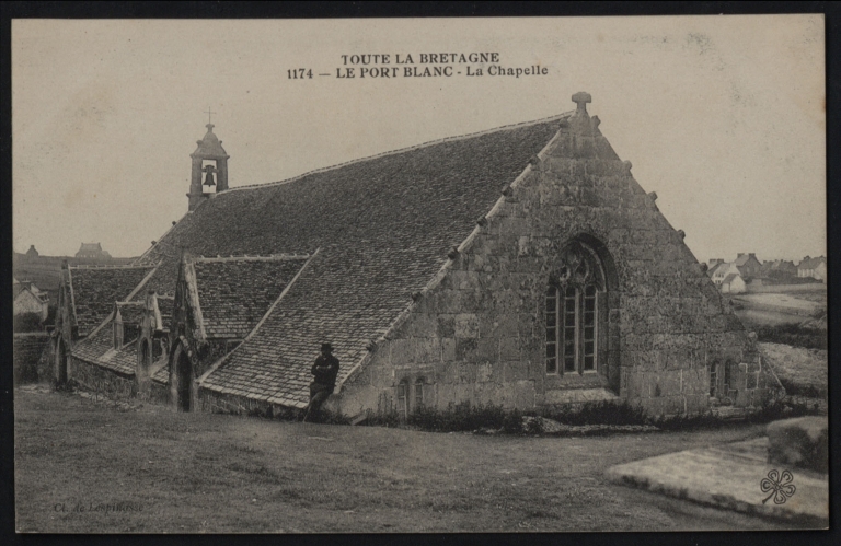 Cette chapelle à demi enterrée, ne possédant qu'un seul bas côté, n'est à l'origine qu'une simple tour de guet avec un campanile, utilisé par tous les seigneurs des environs pour défendre la baie du port de Saint-Gildas. Dès le 14ème siècle, un oratoire dédié à Sainte Marie est construit. En 1492, des Soldats anglais, débarqués à Saint-Gildas, préfèrent faire demi-tour, après avoir confondu des fougères avec des soldats. Pour honorer ce miracle, une nouvelle chapelle est édifiée. Au 16ème siècle, une fois la Bretagne rattachée à la France, le rôle religieux de l'édifice prime sur son rôle défensif. Un nouveau choeur est alors construit. L'édifice actuel date du 16ème siècle. La chaire hexagonale, en bois polychrome, datée de 1634, montre sur le dosseret la représentation d'un sablier au centre d'un cadran d'horloge. L'originalité de cette chaire réside dans le fait que le chiffre 11 n'apparaît pas tandis que le chiffre 12 est inscrit deux fois. Les invasions ennemies étaient si fréquentes que les habitants invoquèrent la protection de la Vierge ; C'est ainsi qu'à la fin du XVème siècle, ils décidèrent de lui confier leur sauvegarde et lui édifièrent une chapelle neuve... Les étapes de sa construction reflètent étroitement les péripéties de l'histoire... Le poste de garde (actuelle sacristie), épais massif au nord date du 13ème siècle. Un édifice rectangulaire fut rajouter pendant la seconde moitié du 15ème siècle au sud du poste de garde. Vers la fin du 15ème siècle furent construits un pignon à l'Ouest avec ses 2 portails, et un escalier à vis dans le poste de garde. Puis vers 1525, le choeur fut agrandit avec une entrée Sud entraînant le percement de l'ancien chevet.