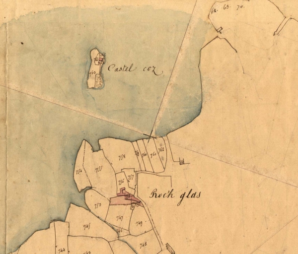 L'Îlot de Coz Castel a été très anciennement habitée comme l'a démontré la découverte d'un atelier de silex. L'île comporte deux bâtiments à usage d'habitation et de dépendances. Une première habitation est visible sur le cadastre de 1834 (parcelle n° 764). Quatre parcelles sont cadastrées sur cet îlot proche de la côte. La tomonymie nautique a retenu le nom de 'Trezenn ar C'hoz Kastell' pour signifier la plage de sable à l'Ouest de l'îlot.