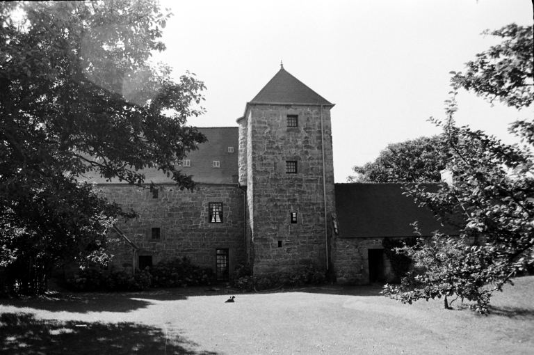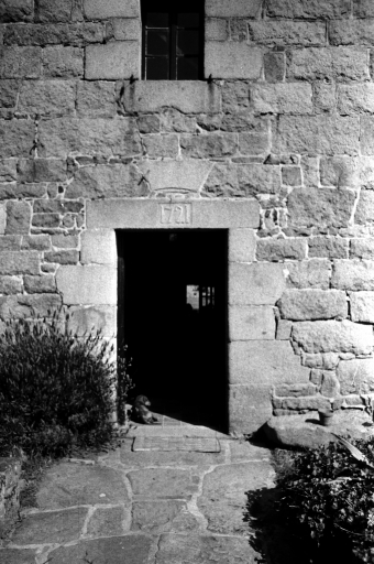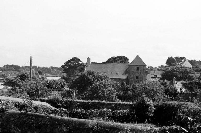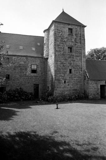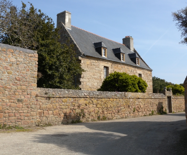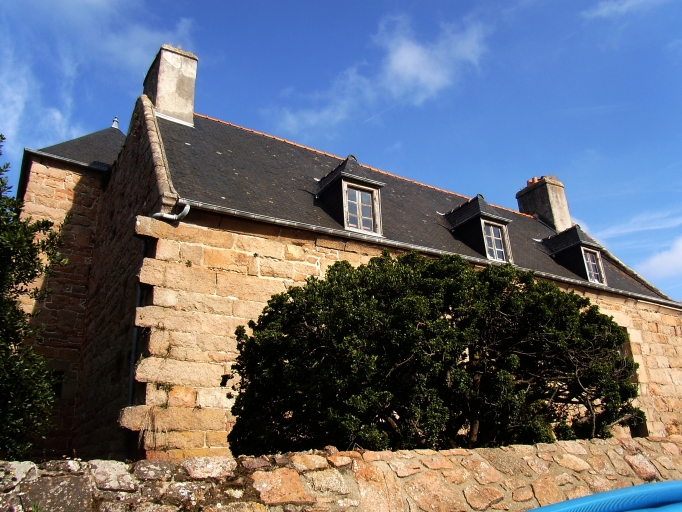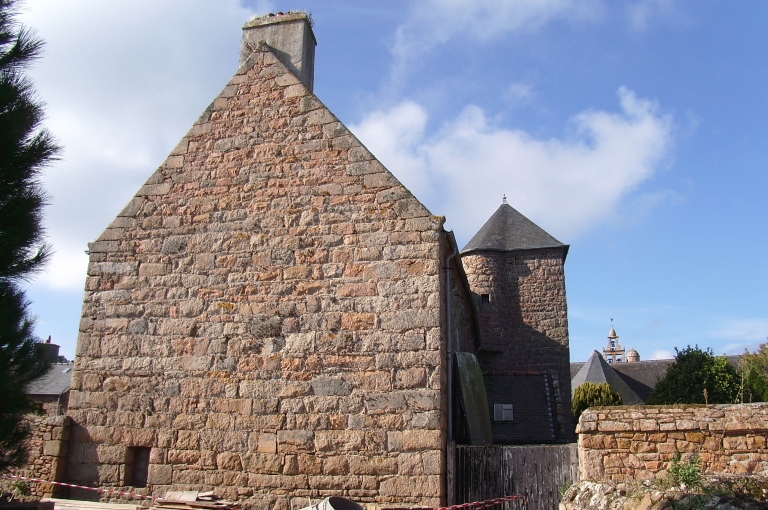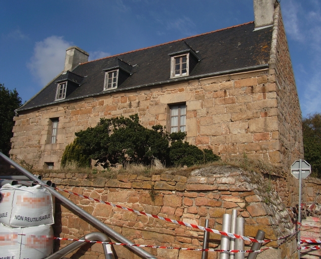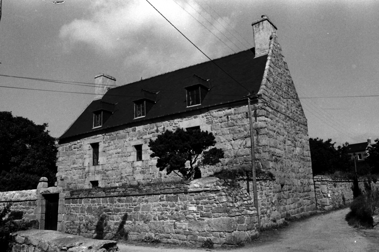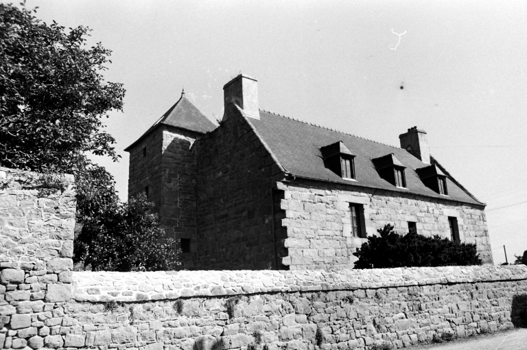 Maison haute de plan rectangulaire édifiée en moellons et gros blocs de granite rose. Couverte d'un toit à longs pans et pignons découverts à rampants à crossettes, elle présente trois travées de baies régulières en façade antérieure - la travée centrale accueillant l'entrée dont le linteau porte le millésime 1721 -, ainsi qu'une tour carrée hors-oeuvre sur l'angle postérieur gauche couverte d'un toit en pavillon. Cette tour, dont les murs atteignent presque le faîte du toit principal, est agrémentée en partie haute d'une tourelle demi-hors-oeuvre en encorbellement. Des pierre d'attente visibles sur l'angle antérieur gauche suggèrent une construction inachevée.