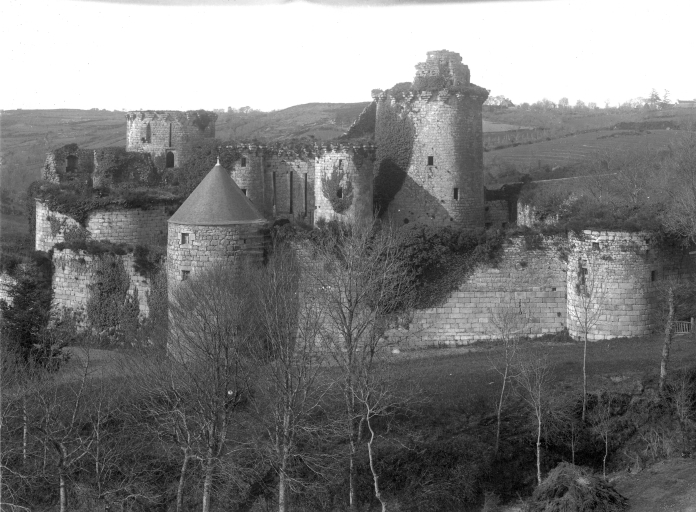 Située à l´extrémité de l´ancienne paroisse de Tonquédec, devenue commune, la place-forte contrôle l´axe de communication que pouvait représenter la vallée du Léguer, au coeur du Trégor. Elle est implantée sur un promontoire entre le fleuve et un petit affluent dont les eaux retenues par une chaussée forment un étang, au sud de la place. A l´extrémité de ce relief, sous les broussailles, on a identifié une petite butte retaillée en forme de motte, vestige probable du château primitif ensuite remplacé par le château de pierre.