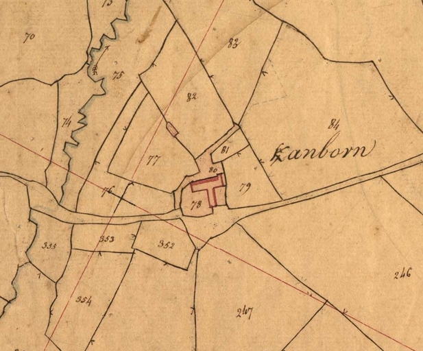 Ensemble figurant sur le cadastre ancien composé de deux logis et formant un plan en T. Le premier logis est orienté est et le second sud.