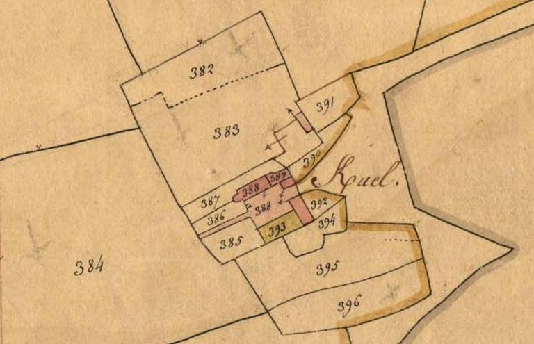 Eléments anciens (porte en arc brisé avec chanfrein et baie datée 1583) remployés dans le logis est dont la mise en œuvre est vraisemblablement postérieur à 1834. Second logis datable du milieu du 19e siècle. Grange à pilier de la seconde moitié du 19e siècle en lieu et place du four à pain figurant sur le cadastre ancien. Dépendance datable des années 1820.