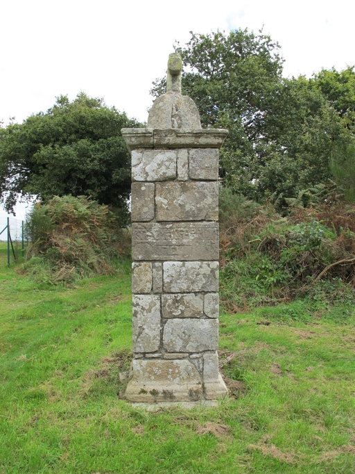 Elle est située au carrefour des routes qui mènent à Kerdilien au nord, Kerhard au sud, Bezoudec à l´est et Croaz Hent ar Foll et Prat ar Folgoat à l´ouest ; entre la chapelle de la Trinité et le manoir de Guernaham. Edicule de plan rectangulaire, à base et table moulurées construit en moyen appareil de pierre de taille, avec une niche pour accueillir une statue aujourd´hui disparue, coiffé d´un petit dôme surmonté d'une croix.
