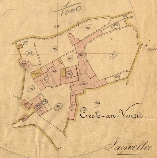 Ferme associée au toponyme "Crec'h ar Veuzit" ("Crec'h" signifie en breton "mont, colline, hauteur" ; "Veuzit" vient probablement de "Beuzit", "le buis"). L´édifice ne figure pas sur le cadastre de 1848 : il s´agit d´une reconstruction datable de la 2e moitié du 19e siècle mais remployant des éléments anciens. La porte en arc plein cintre de l´étable est datable du milieu du 17e siècle. Cette ferme a été signalée en 1969 lors du pré inventaire.