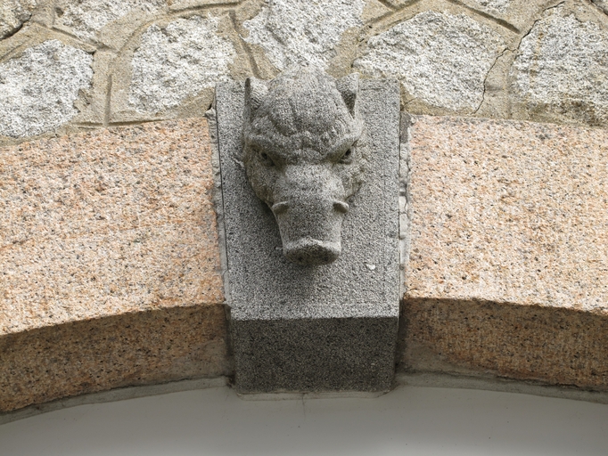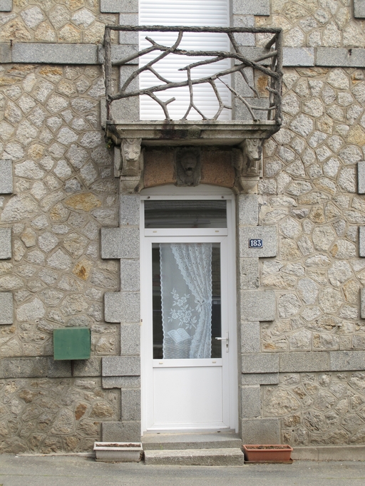 Maison de plan rectangulaire alignée sur la rue, à double orientation et double en profondeur, à trois travées en façade (type ternaire) construite en moellon de granite. La travée centrale qui comprend l'entrée est mise en valeur par une porte-fenêtre avec balcon à l'étage carré. L'encadrement des baies (en arc segmentaire ou surbaissé) et les chaînes d'angles sont édifiés en pierre de taille de granite. Elle est composée d'un logement en sous-sol semi enterré accessible depuis la façade postérieure (logement pour domestique ?), d'un rez-de-chaussée (accès central sur rue), d'un étage carré et d'un comble abrité sous un toit à deux pans et pignons couverts. La distribution intérieure, avec couloir traversant central, est classique. Eléments de décor : granite gris (entourage des baies, chaînes d'angles et bandeau), clés d´arc sculptées en granite gris (représentant des animaux dont un éléphant et une tête humaine), granite rose (claveaux), appareil polygonal en façade antérieure, balcon central sur corbeaux sculptés (représentants deux sphinx ou lynx ; garde-corps en rusticage représentant un ornement végétal).