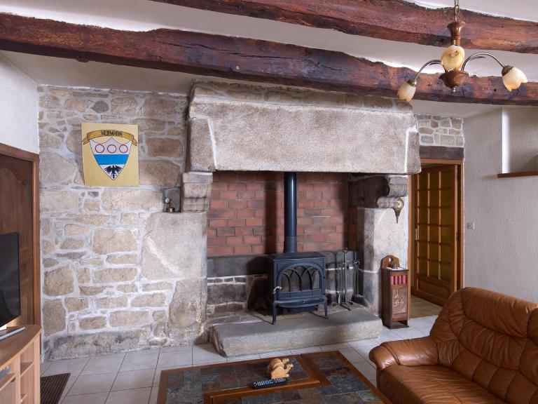 Dans le logis principal, la grande cheminée du rez-de-chaussée, engagée dans le pignon est, est dotée de consoles galbées en talon (à double volute, rentrante et saillante) provenant de l'ancien manoir. Placées dans l'axe de l'entrée et entre les deux logis, les volées d'un large escalier en pierre relient les étages des deux habitations.
