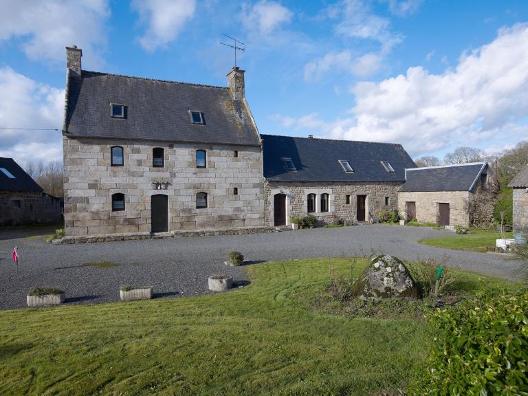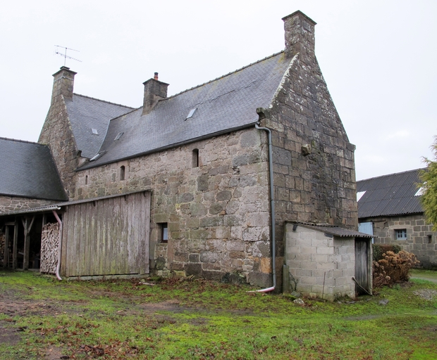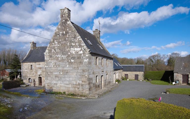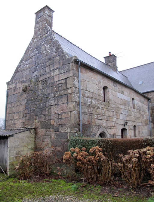 Ensemble de deux logis à étage construits en retour d'équerre, en pierre de taille de granite de moyen appareil (hauteur des assises comprises entre 35 et 20 cm), couverts d´un toit à longs pans en ardoise (à égout retroussé ou coyau pour l´arrière-corps nord), à pignons découverts et rampants à crossettes, souches de cheminées moulurées.
