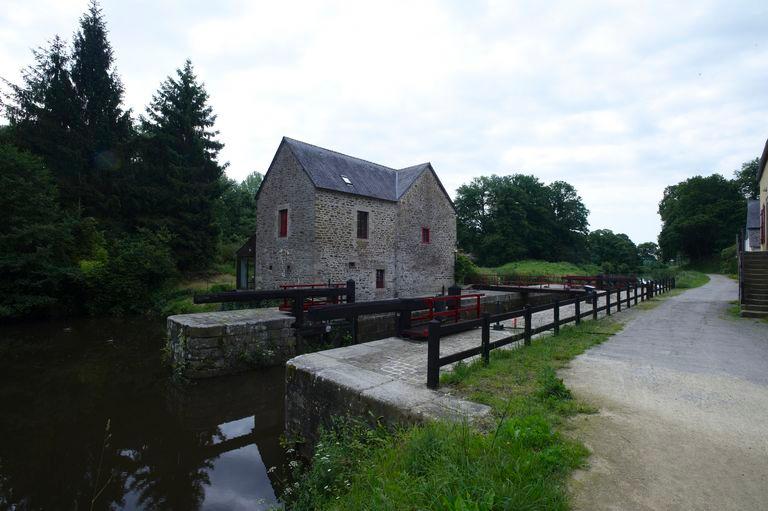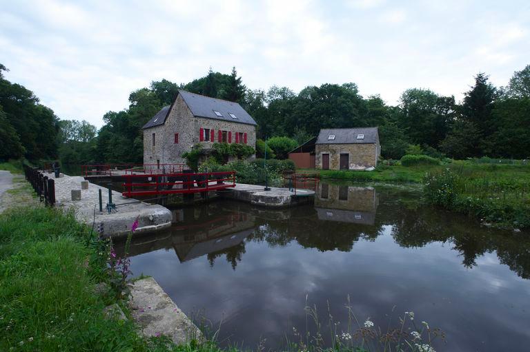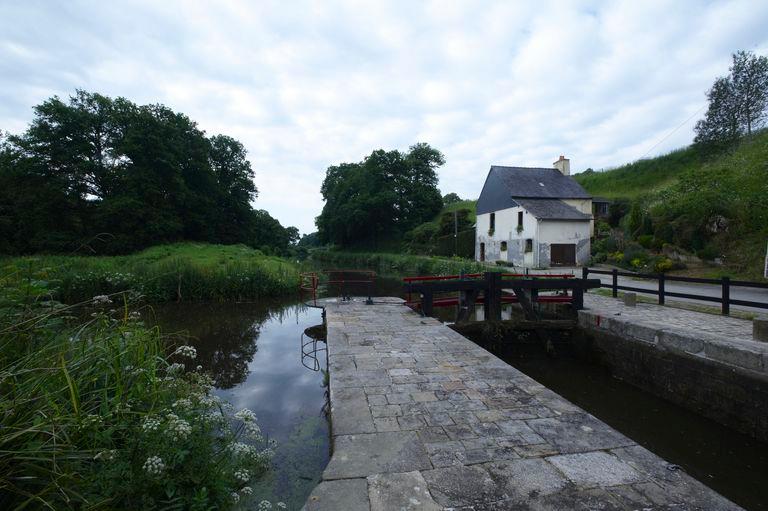 Le sas de l’écluse est formé de deux bajoyers, murs latéraux, en pierre de taille de granite qui sont reliés par une passerelle métallique. Les vannes sont en bois.