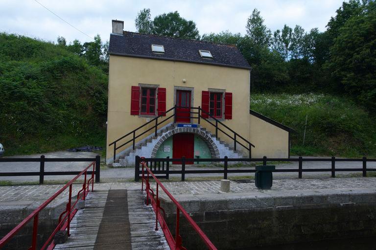 La maison éclusière, parallèle au canal, présente un rez-de-chaussée surélevé accessible par un escalier à double volée. Elle a été agrandie d’appentis sur le pignon et à l’arrière. Sa distribution reprend une formule simple à deux pièces au sol.