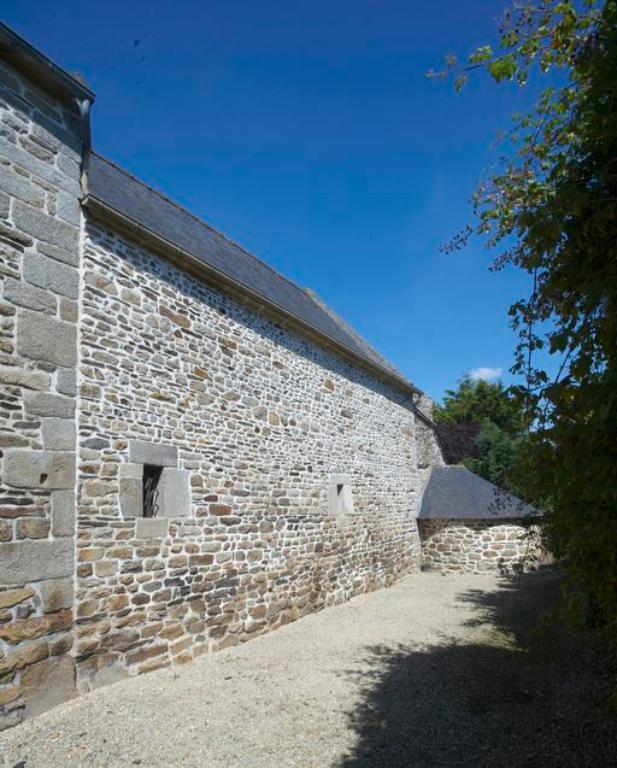 Logis orientés au nord. Façades principales en pierre de taille de granite, façades arrières constituées majoritairement de moellons de schiste. Le logis principal est accolé vers l’est d’un logis secondaire. Ces deux logis sont à deux pièces au sol dont une seule est chauffée. La salle est aménagée d’une cheminée et d’un vaisselier mural. Le logis principal possède une chambre à l’étage qui est accessible par un escalier arrière en vis, hors œuvre. La grande cheminée de la salle ne possède pas de décor, hormis la corniche arrondie aux angles.Quelques emplois partiels de pierre des faluns, manteau de cheminée de la grande salle, corniche extérieure.