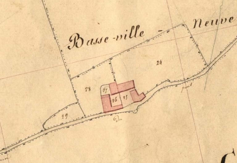 A l’origine, il s’agit vraisemblablement d’un logis à trois pièces au sol de la première moitié du 17e siècle qui a été transformé en 1753 pour sa partie est et vraisemblablement vers cette même période et au 19e siècle pour sa partie ouest. Les cadastres anciens de la première moitié du 19e siècle témoignent déjà d’une partition en deux lots avec deux logis ayant chacun ses dépendances.