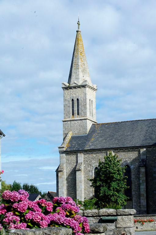 << En 1847, Mgr Lemée, evêque de Saint-Brieuc, étant passé à Brusvily, recommanda la construction d’un nouveau clocher ».« En 1861, Mgr Martial engageait à son tour les habitants de Brusvily à reconstruire l’église toute entière. » « l’architecte Meslay établit les plans et les travaux commencèrent. Mgr David vint bénir la première pierre, le 11 avril 1867. Consécration le 14 septembre 1873.>>