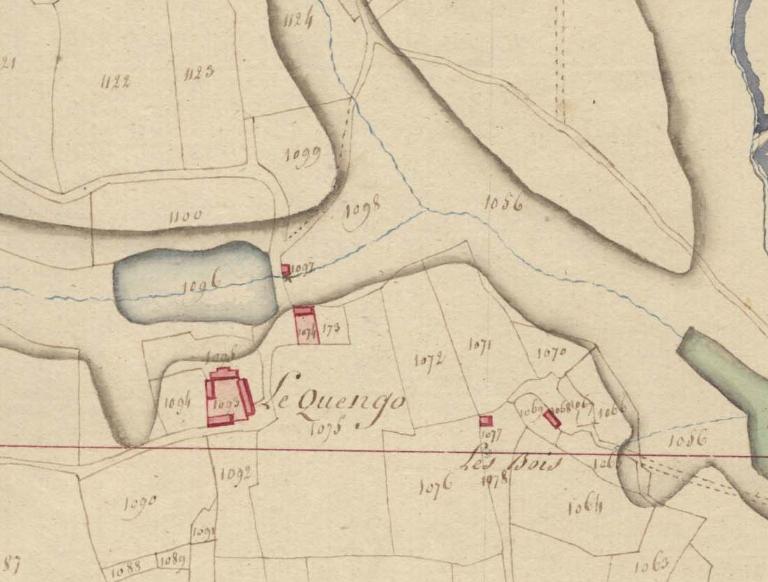 Implanté en bordure de la vallée du Guinefort, le Quengo n’a conservé qu’une partie de son environnement. La rabine mentionnée sur le cadastre de 1843 a disparue ainsi que les viviers à l’ouest et le grand étang qui se situait à l’arrière du logis. Le périmètre de la cour, autrefois fermée par un portail, a cependant été maintenu ainsi que le grand jardin ouest clos de murs.