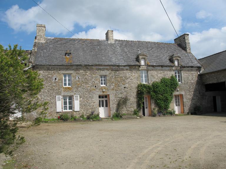 La façade du logis présente deux types d’ouvertures avec des linteaux droits et des linteaux en arc segmentaires qui dénotent deux campagnes différentes de construction. Il en est de même des souches de cheminée, celle de droite à épaulement reprend le modèle des maisons bourgeoises de l’époque. La façade arrière du logis le plus ancien possède un bloc de latrines.