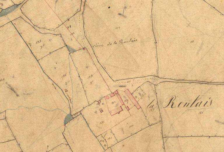 Le domaine de la Roulais situé au nord est du bourg a conservé une partie de son environnement dessiné sur le cadastre de 1843. Le logis orienté à l’ouest donne sur une vaste cour, à l’origine fermée par un portail dont il reste un pilier sur lequel est venu s’accoler des soues à cochons. Une aile de dépendances au nord divise l’espace réservé au maitre de celui de son métayer qui possède son propre accès. De vastes jardins entourent la propriété, certains sont réservés comme ceux annotés « la frêche de la retenue ». Celui situé a proximité du logis devait être particulièrement soigné, un cabinet de plaisance, ou pavillon de jardin est représenté sur le cadastre de 1843. Un jardin est également dessiné à l’arrière de la métairie et des parcelles en culture sont mentionnées telles que le courtil à chanvre (141), le jardin du courtil à chanvre (140), le semis (139).