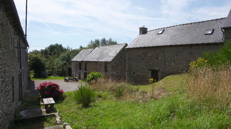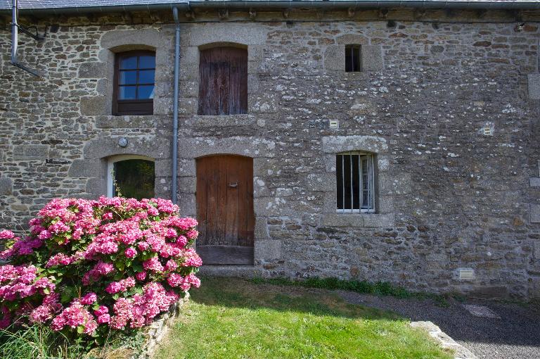 Cette ferme située plus au nord, présente quant à elle une organisation différente et des campagnes de constructions plus anciennes pouvant remonter à la fin du 16e siècle ou au début du 17e siècle. Le logis bien que modifié par des modifications d’usage, s’apparente aux logis rencontrés sur le territoire de la Rance à trois pièces au sol. La présence à l’étage d’une chambre haute est attestée par une fenêtre qui cohabite avec une gerbière à usage de grenier. La mixité des fonctions du logis qui regroupe une partie habitation et une partie exploitation ou de stockage est courante pour cette période et correspond à des usages fonctionnels afin d’assurer la protection et la surveillance des possessions de la ferme, troupeau ou autre source de revenu et récoltes aux greniers.