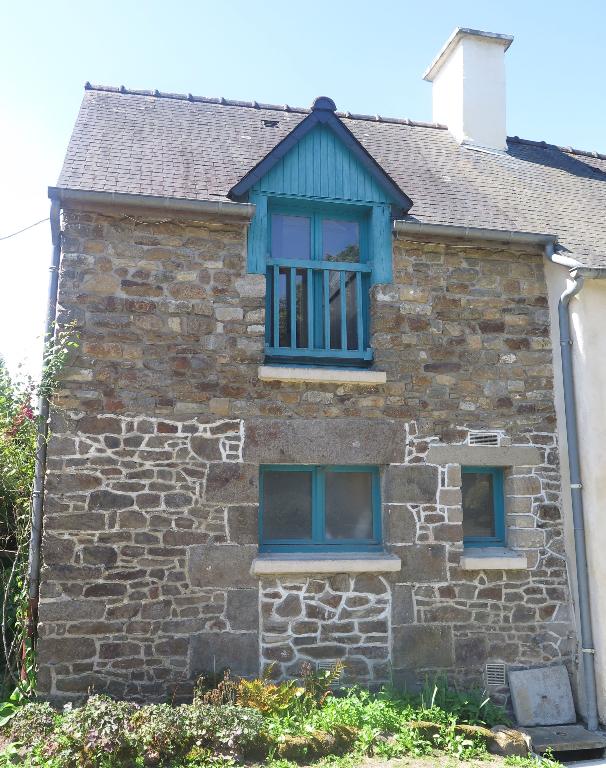 Le gros-oeuvre est du moellon de granite avec joints. En façade avant, trois ouvertures sont visibles. Au rez-de-chaussée, on peut aussi observer l’encadrement en granite d’une ancienne porte transformée en fenêtre. Cette fenêtre a un linteau en granite. A côté, deux autres ouvertures sont visibles avec encadrement et linteau en granite. Les deux fenêtres ont des appuis en béton. A l’étage, une gerbière avec fronton en bois est visible avec un appui en béton. Une barrière en bois est installée devant la fenêtre. Une fenêtre sur le mur pignon de l’annexe Est est encadrée par du granite harpé. A noter que tous les joints ne sont pas visibles sur ce mur pignon. Sur la façade arrière de cette annexe, une petite ouverture est visible avec un linteau en granite. En façade arrière, deux velux sont implantés sur le toit de cette annexe.