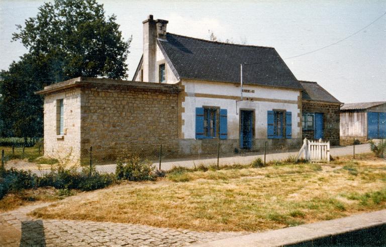Cette partie est entièrement enduite. Une cheminée en granite et en béton à l’extrémité sud-est du toit est visible. La partie centrale est entièrement enduite tandis que les deux annexes sont composées de moellons de granite. Trois ouvertures sont visibles sur la partie centrale : la porte avec imposte est encadrée par deux fenêtres. Les encadrements comme les linteaux sont en granite. Deux fenêtres sur le mur pignon sud-est de la partie centrale de la maison sont visibles. Les encadrements sont fait de granite harpé. Les linteaux sont aussi en granite.