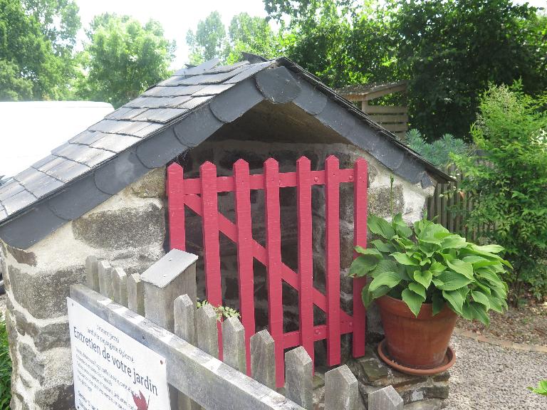 Le gros-oeuvre est réalisé en pierre de schiste. L’annexe a un toit plat. Une fenêtre est visible sur le mur pignon. Elle est encadrée par du granite harpé avec linteau et pierre d’appuis en granite.